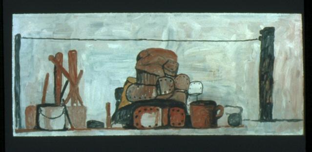 Painted in black on back: Philip Guston / "The Road"1972 / Oil 51¼ x 118¾