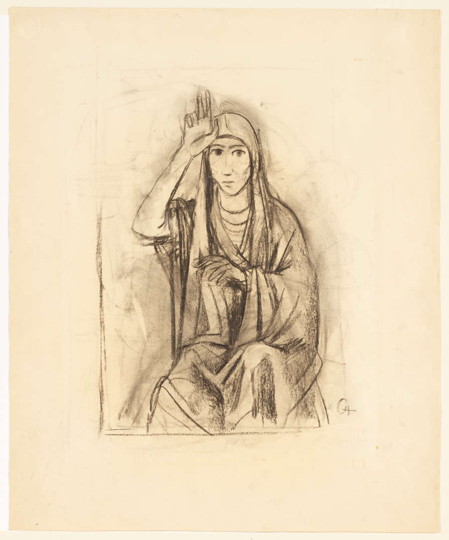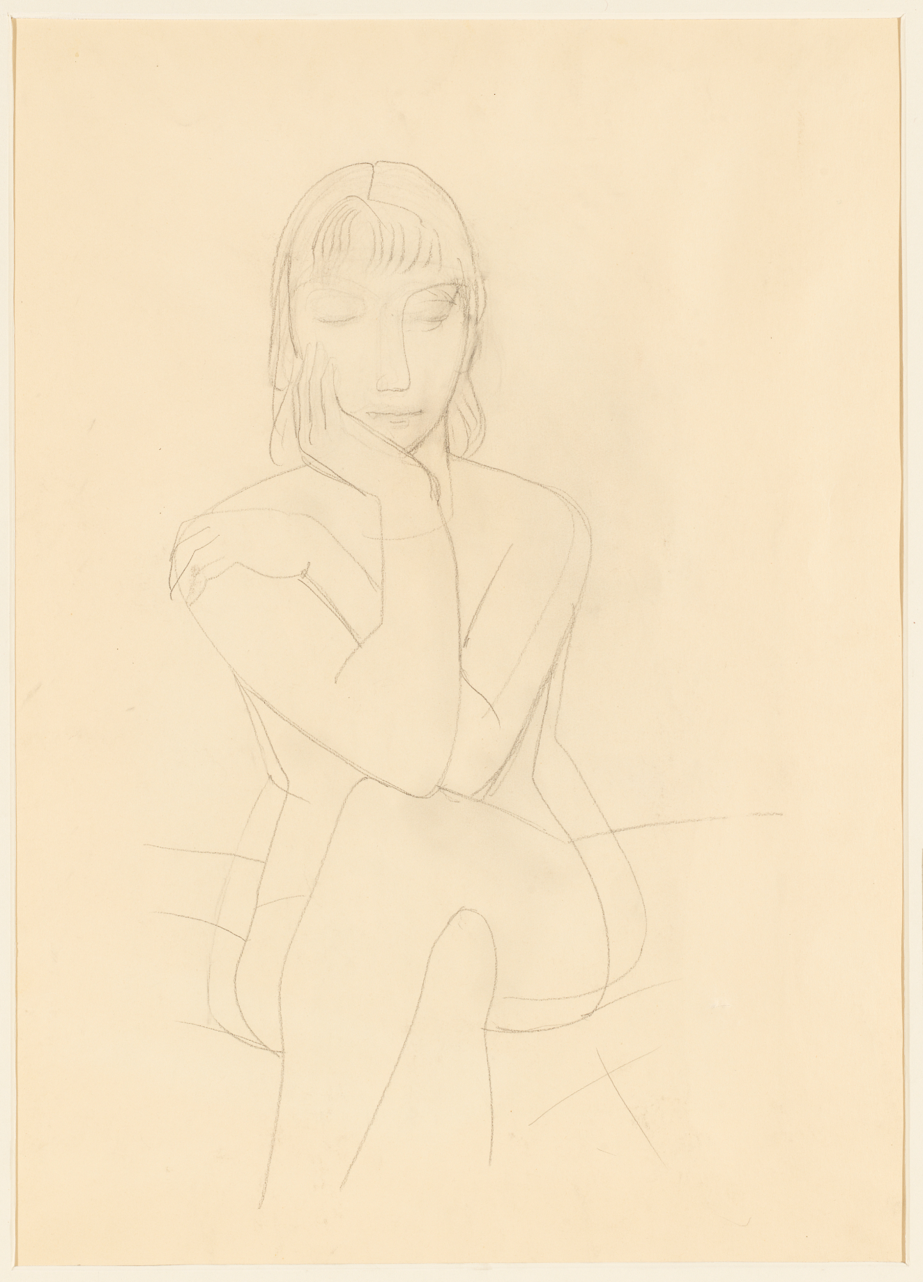 Verso: graphite sketch of seated figure. Inscribed above image in pencil, "KB417"
