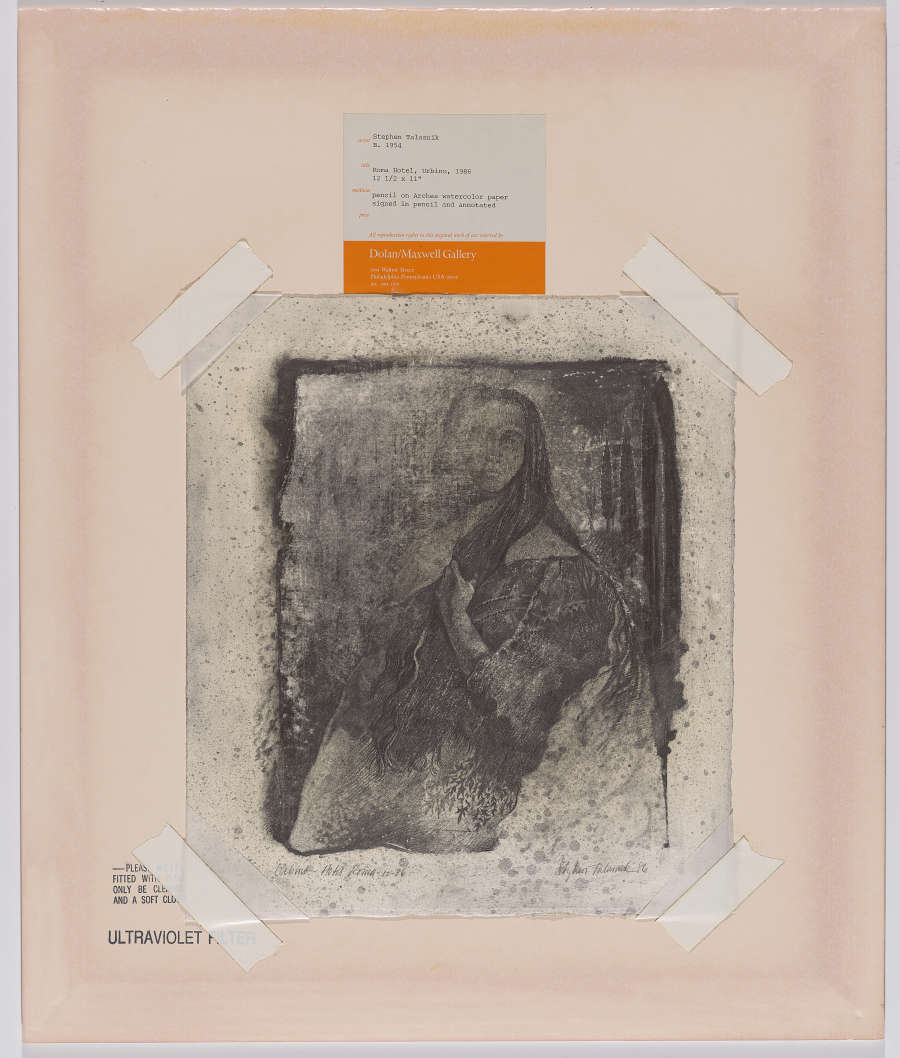 Inscription: Recto: LL Inscribed in Graphite: "Urbino -- Hotel Roma - 12 - 86" ; LR Inscribed in Graphite: "Stephen Talasnik 86"