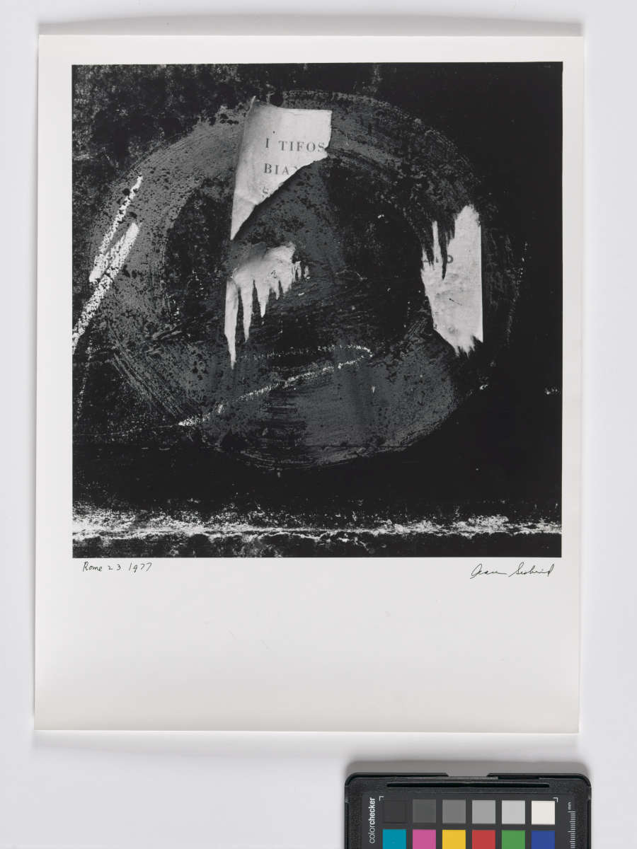 Inscribed in black ink, recto LL: Rome 23 1977. Inscribed in black ink, recto LR: Aaron Siskind. Inscribed in graphite, verso LC: R23 9/77/ 5. Inscribed in graphite, verso LL: [the number 9 in a circle]