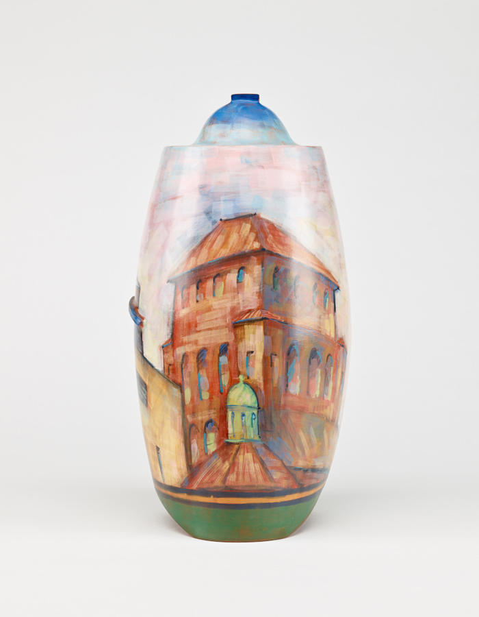 The images on this website can enable discovery and collaboration and support new scholarship, and we encourage their use. This object is in Copyright. This object is Roofscape vessel with the accession number of 1991.187. To request new photography, please send an email to imagerequest@risd.edu and include your name and the object's accession number.