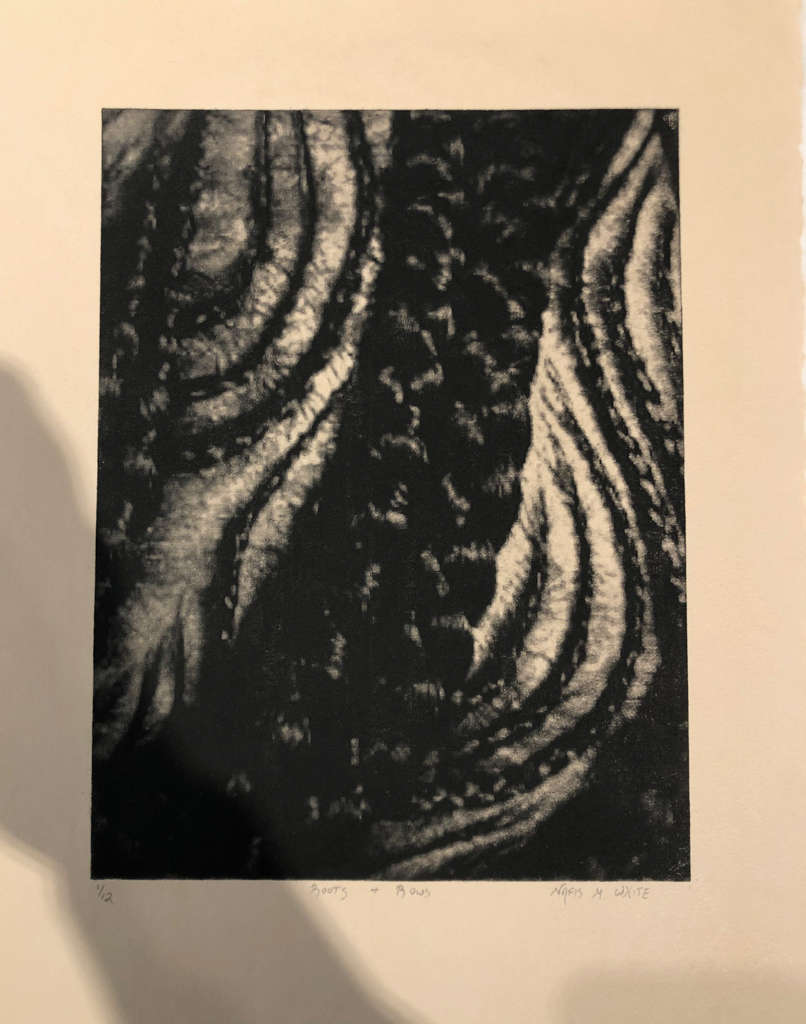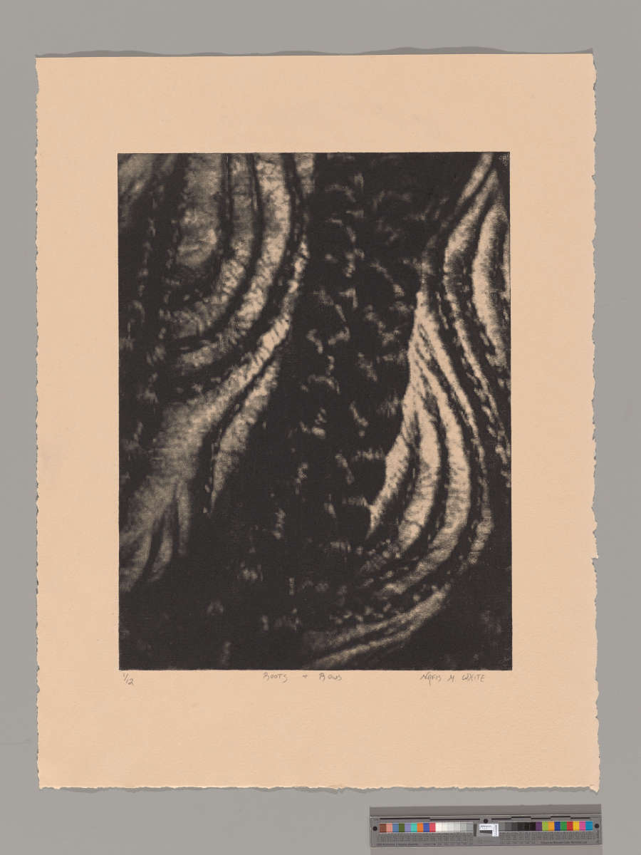 Inscribed and signed on graphite on bottom of image on recto: 1/12 Roots + Rows Nafis M. White. B inscribed on recto LL.