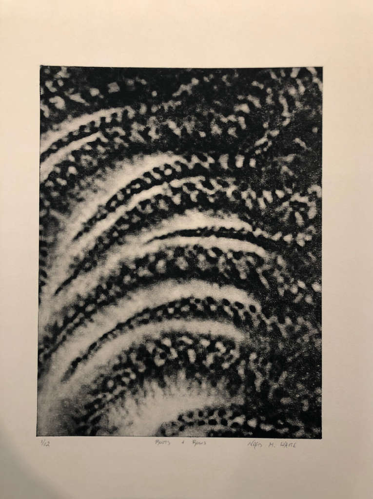 Inscribed and signed on graphite on bottom of image on recto: 1/12 Roots + Rows Nafis M. White. B inscribed on recto UL.