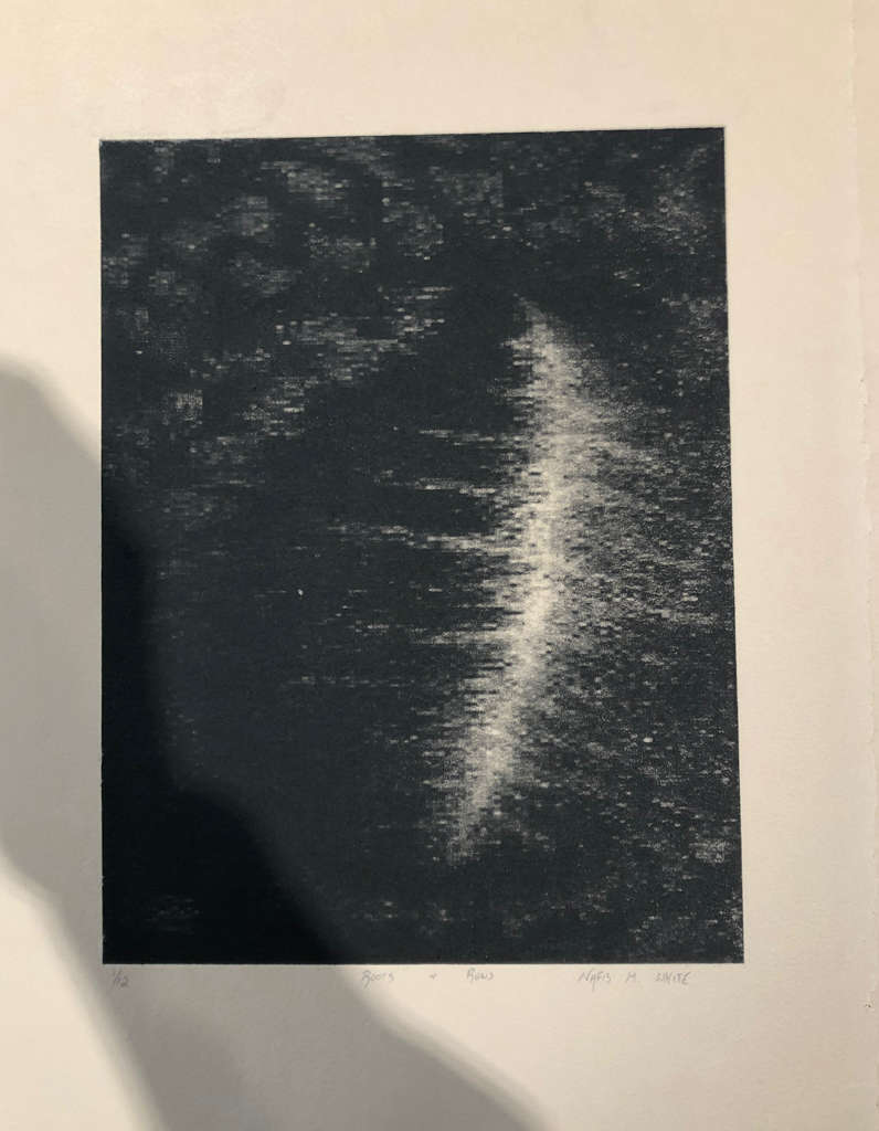Inscribed and signed on graphite on bottom of image on recto: 1/12 Roots + Rows Nafis M. White. B inscribed on recto UR.