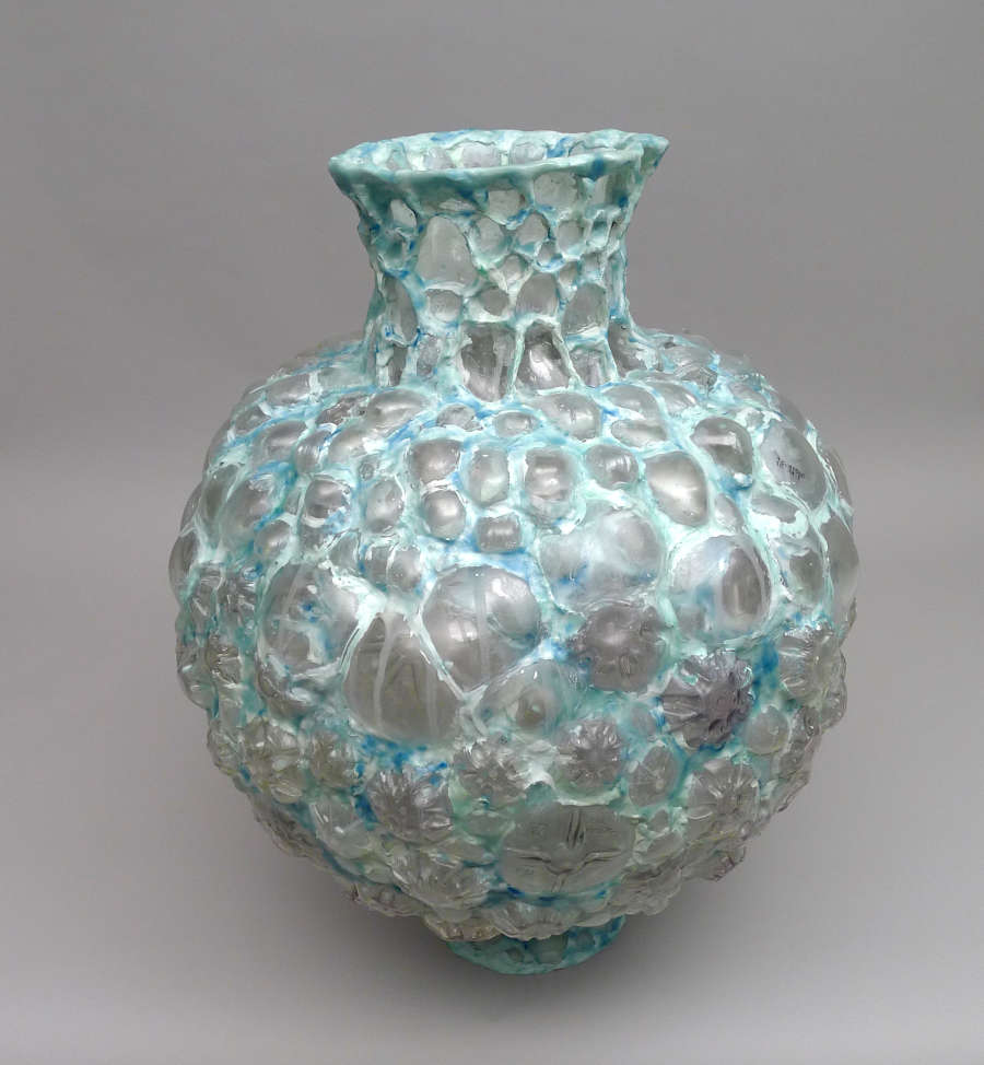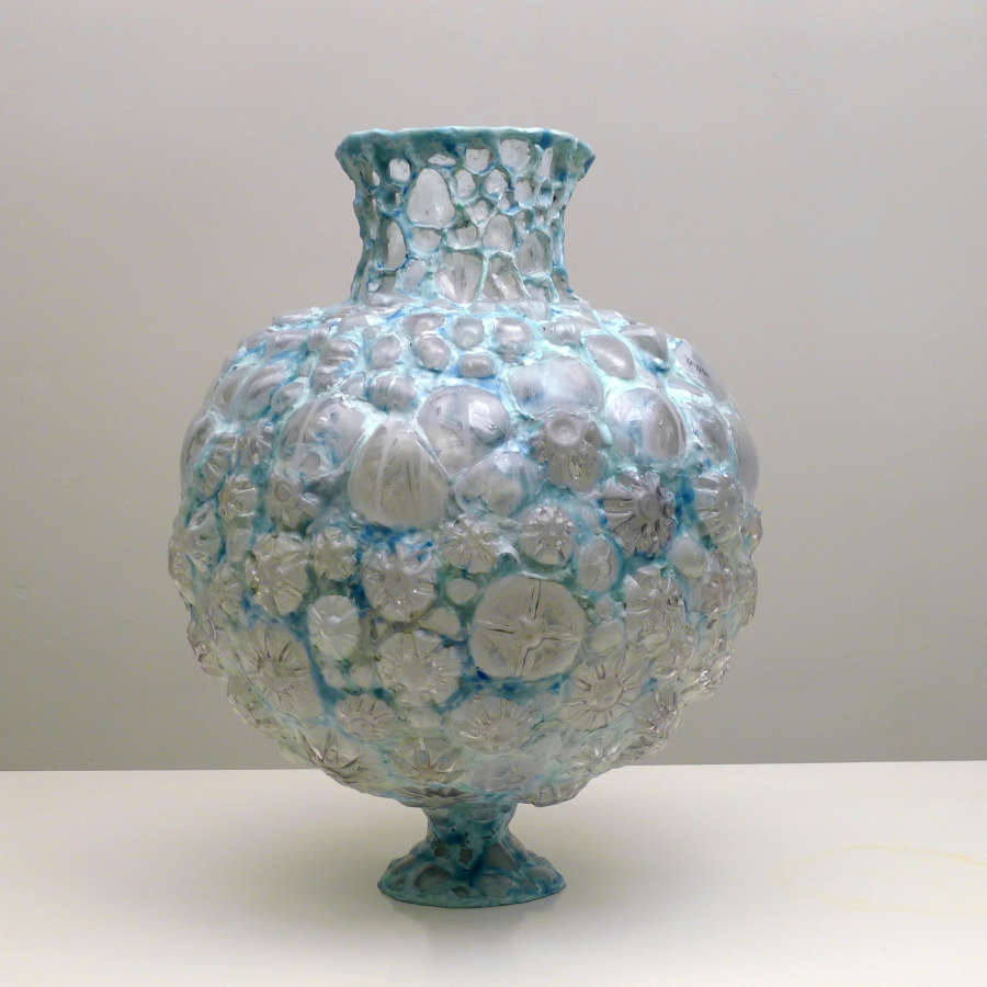 Plastic bottle pieces, hot glue, resin, acrylic polymer and paint