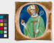 Watercolor, shell gold, leaf gold, and ultramarine on vellum