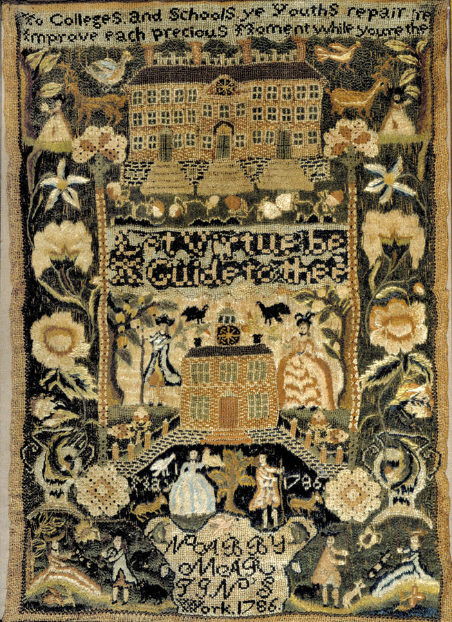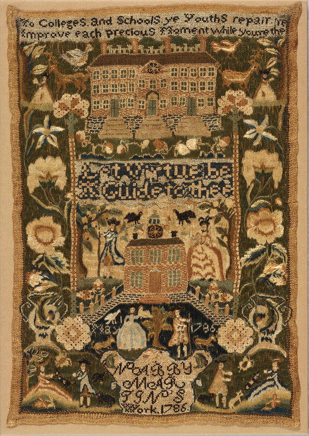 To Colleges and Schools ye Youths Repair. Improve each precious Moment while you're there; Let Virtue be/A Guide to thee.Signature:NABBY/MAR/TIN'S/WORK 1786; Inscription:MAR--1786