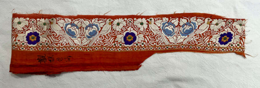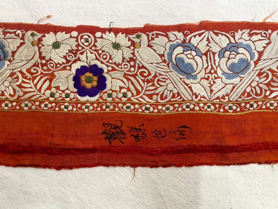 two inscriptions in ink in Chinese characters. One quite faded and somewhat blurry, a second quite sharp.