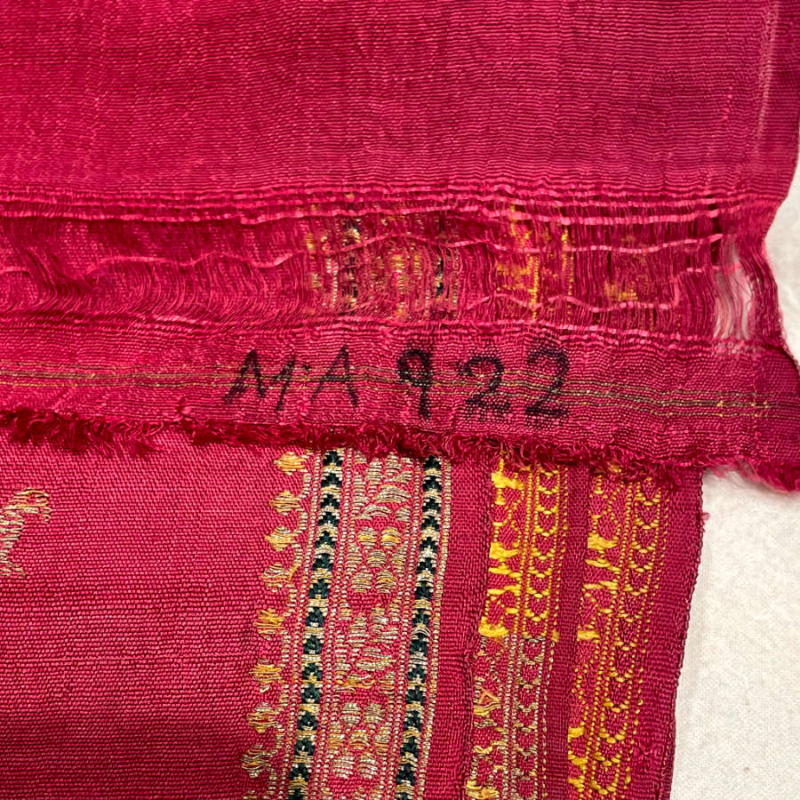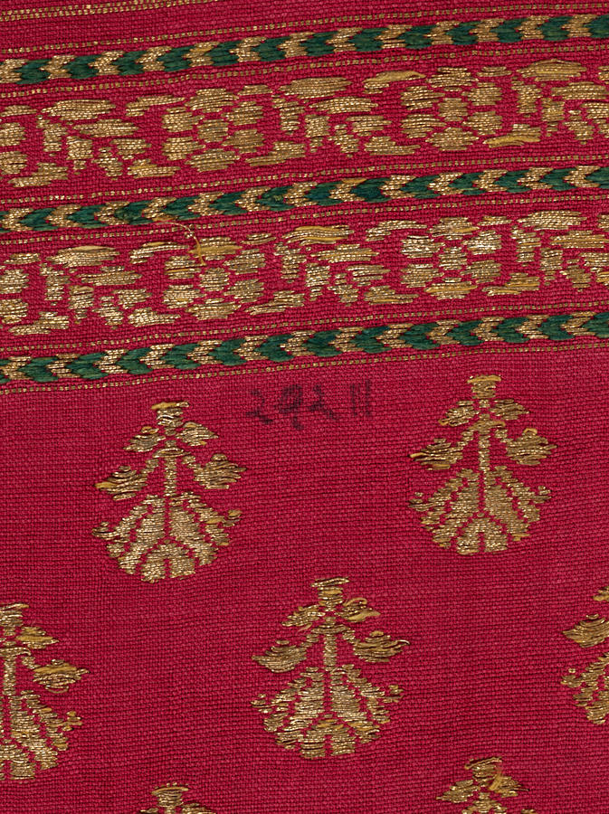 Silk; plain weave, supplementary discontinuous and continuous patterning wefts