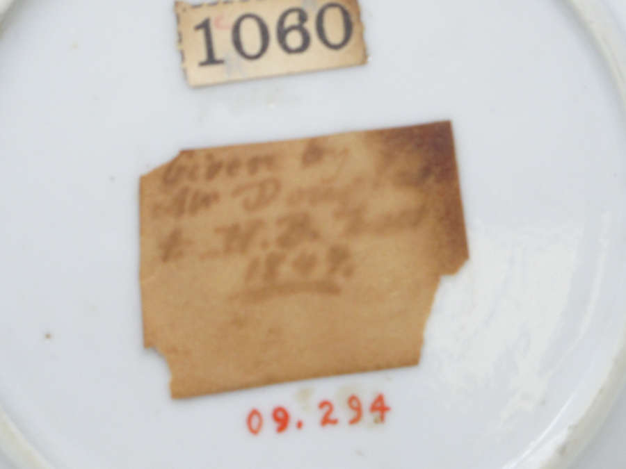 Old label on saucer:"Given By Mr. Douglas to H. B. Ives 1844"