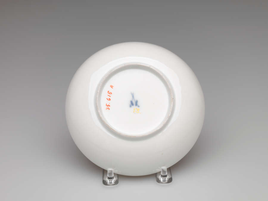 Marks: Mark of crossed swords and 13 in gold on base of cups and saucers; impressed:53