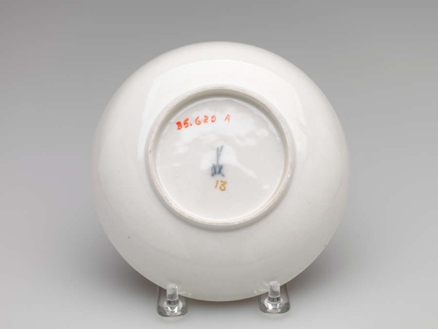 Marks: Mark of crossed swords and 13 in gold on base of cups and saucers; impressed:44