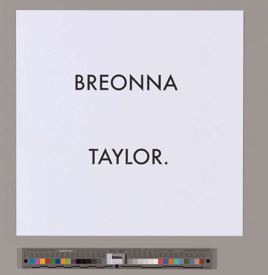 On verso, "Say Her Name: / Breonna Taylor." inscribed in graphite BC, signed and dated "RD 2020" in graphite LR.