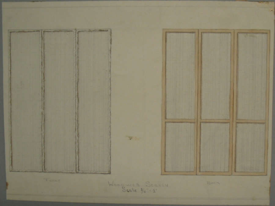 On recto in pencil: "FRONT / WOODWEB SCREEN / BACK / SCALE 3/4"=1' ".On verso in pencil: "$125.00".