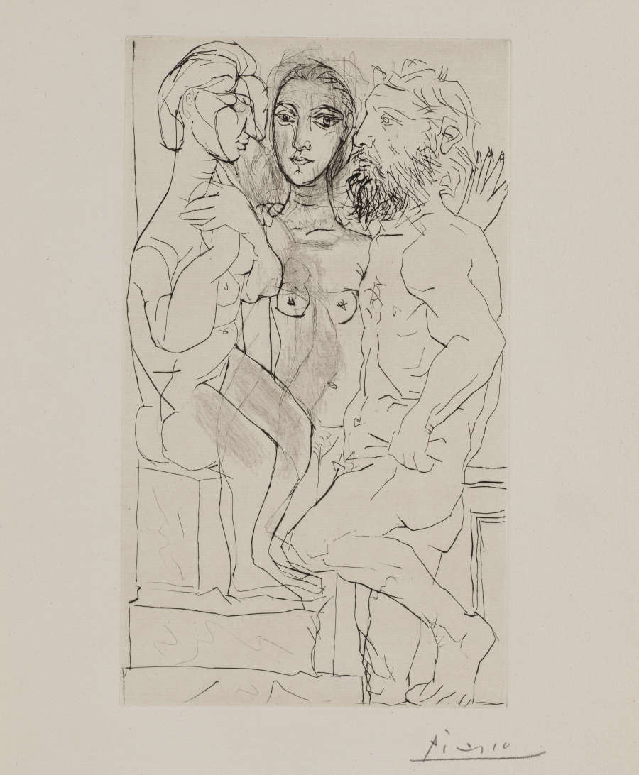 Sculptor, Model, and Sculpture: Seated Woman (Sculpteur, modèle et sculpture: femme assise); Vollard Suite (Suite Vollard), 1933