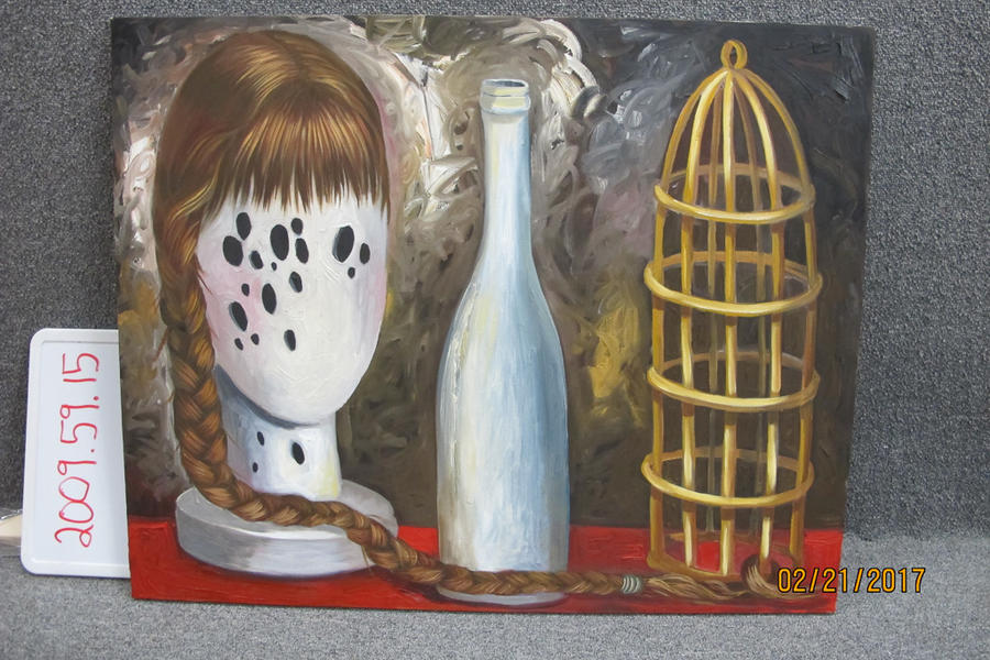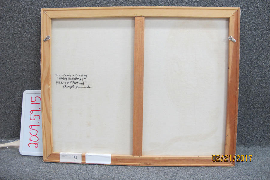 Signed verso on canvas on left half, in black pen:"To Herby and Dorothy / Happy Holidays /1988/ Self Portrait Cheryl Laemmle"