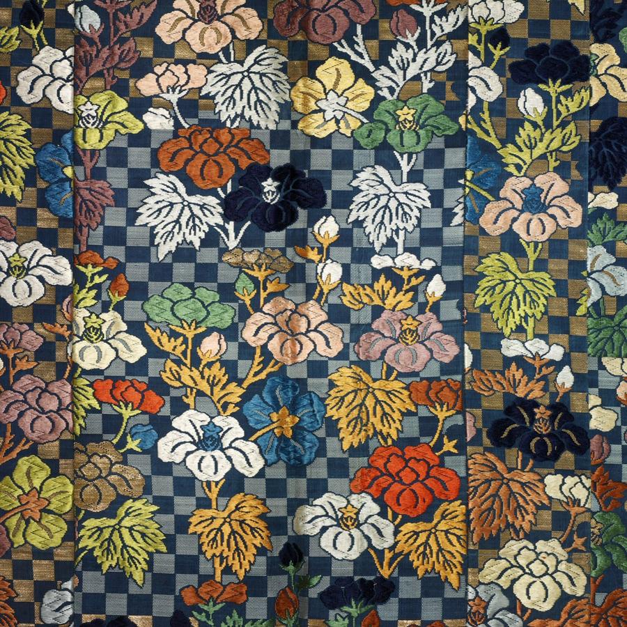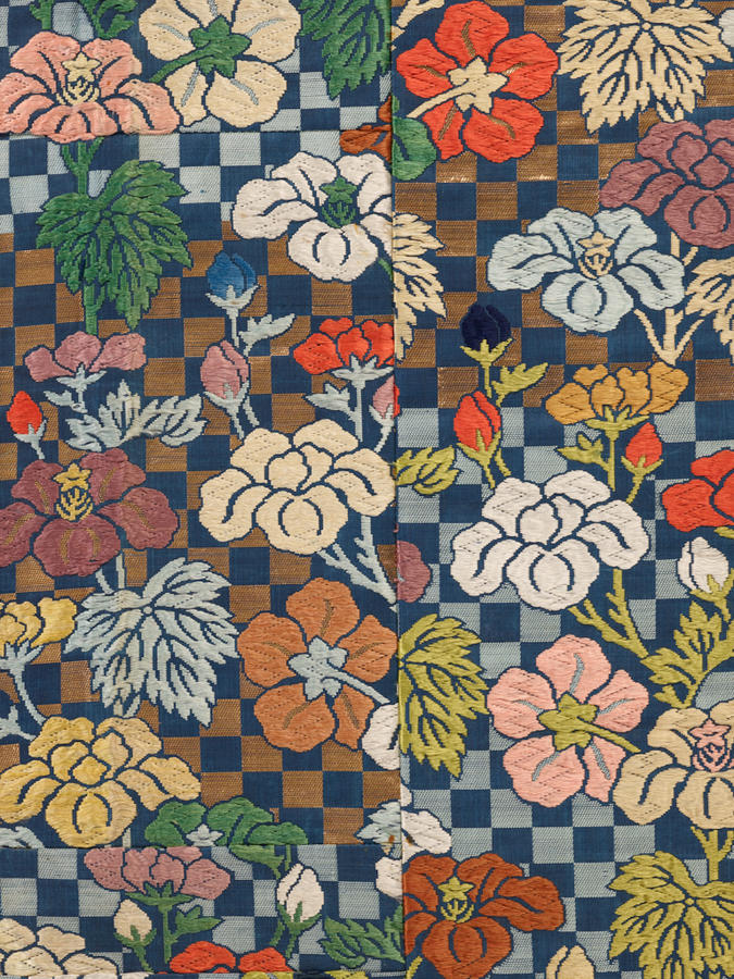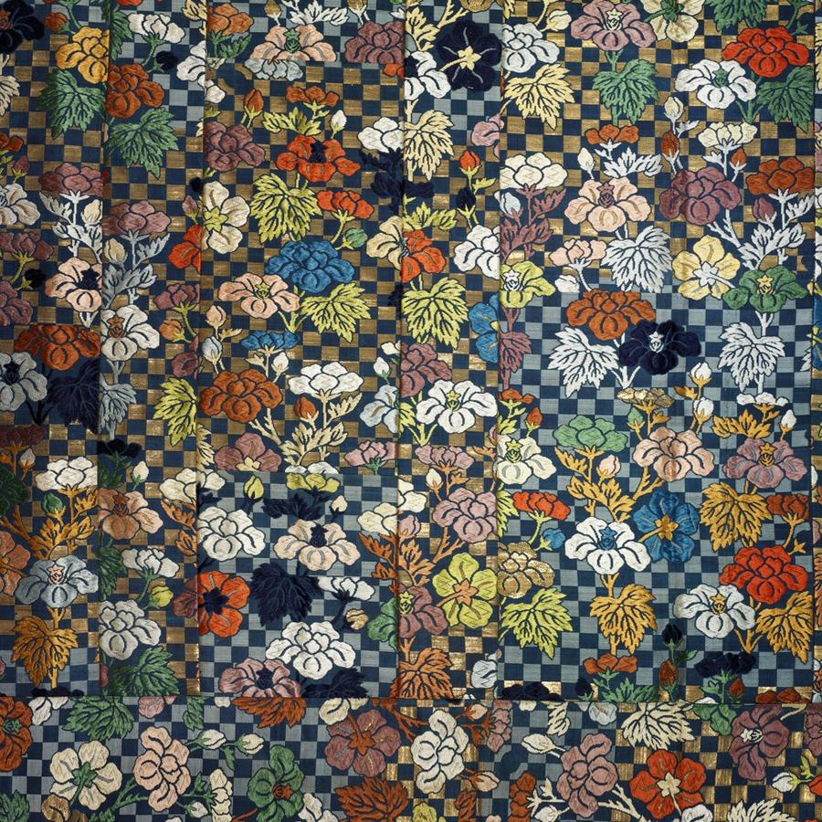 Silk, gilt mulberry paper; compound weave, supplementary weft patterning