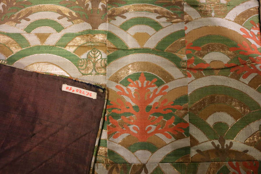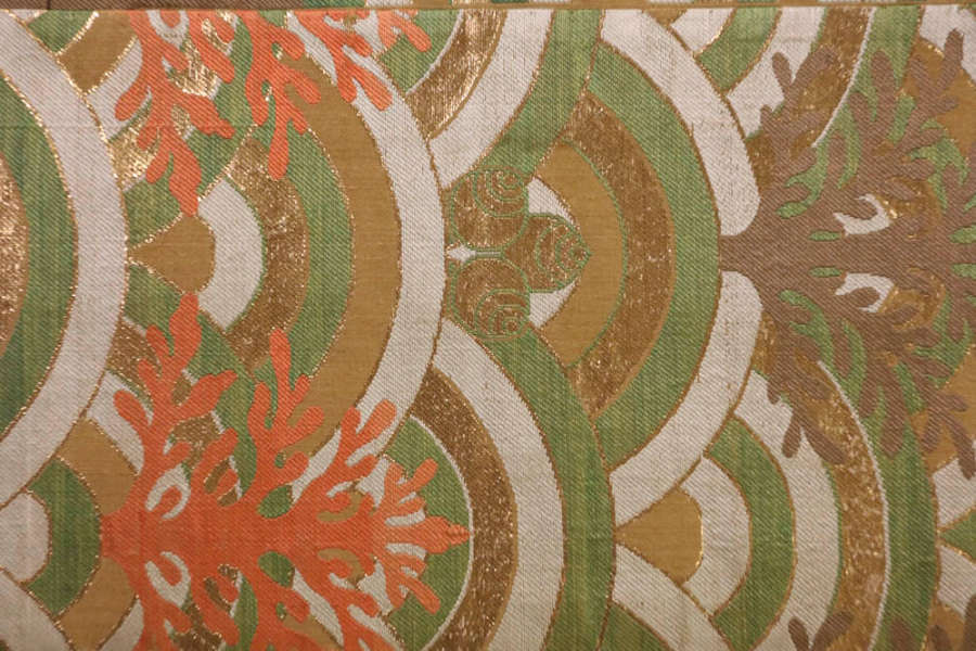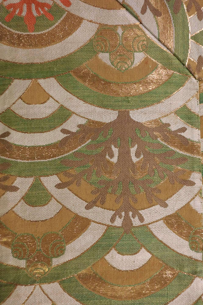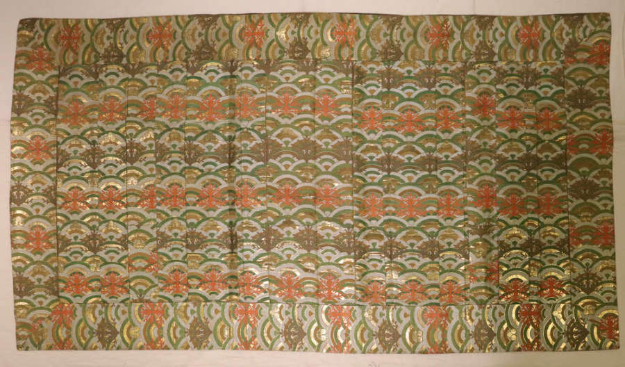 Silk, gilt mulberry paper; compound weave, supplementary weft patterning