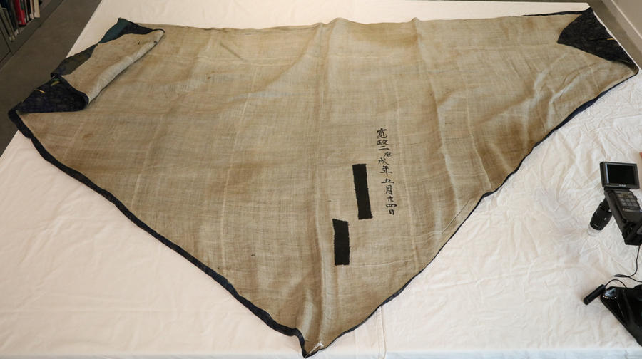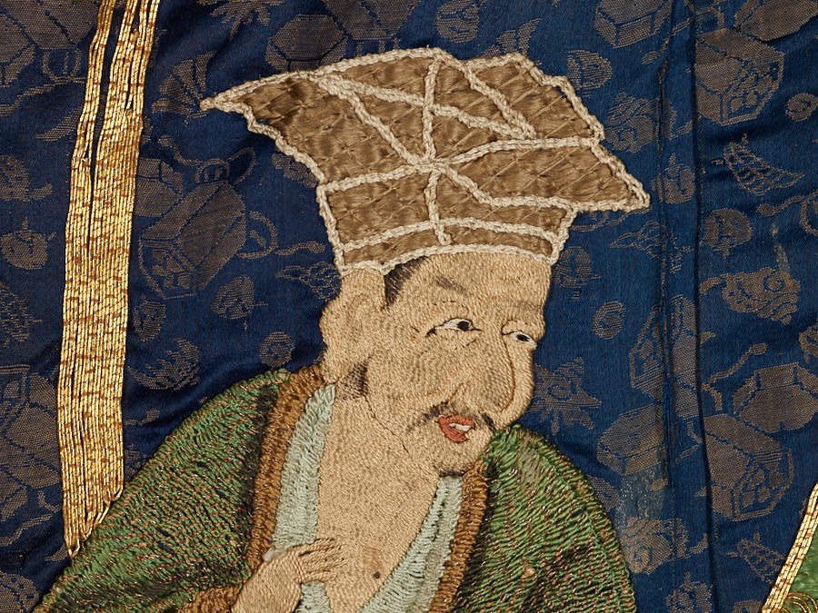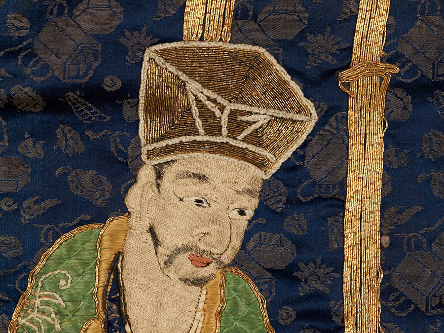 Buddhist altar cloth (uchishiki) silk embroidery (shishû), gold metallic thread couching (koma-nui)