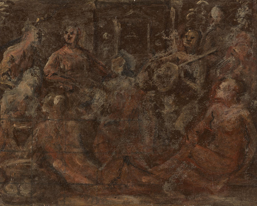 Seven Seated and One Standing Figure, late 1500s-mid 1600s