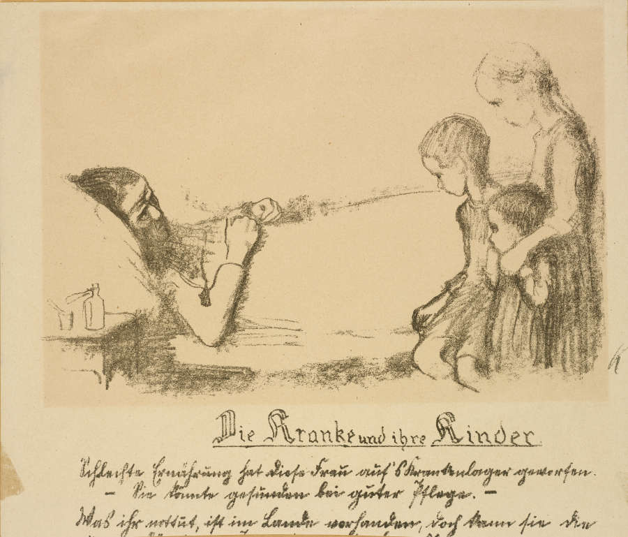The Sick Woman and Her Children; first from the series "Drei Flugblatter gegen den Wucher", 1920