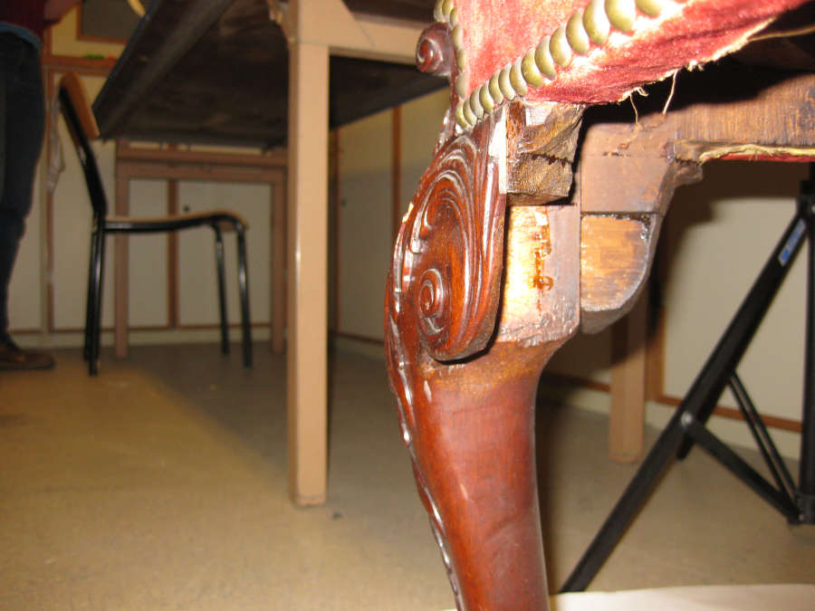 Mahogany, jute, hair, and brass