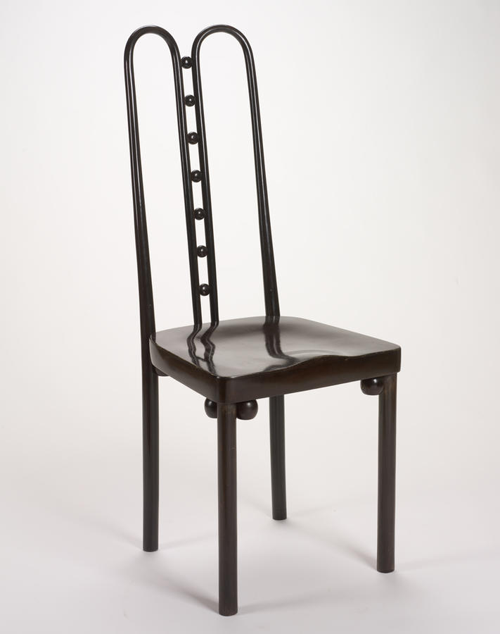 Pendant balls have punch marks to indicate location on chair; fragments of two paper labels on underside of chair seat, only a portion of Josef is legible