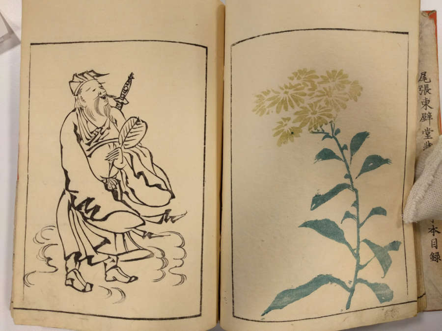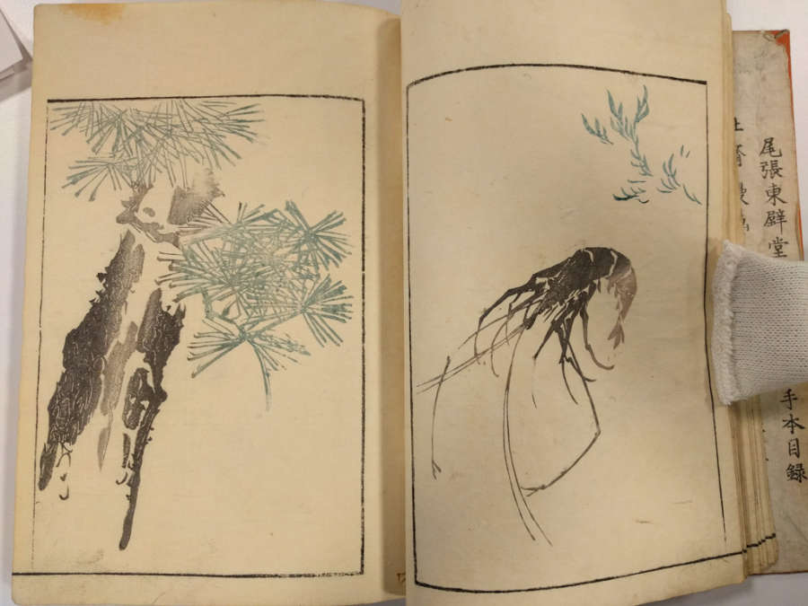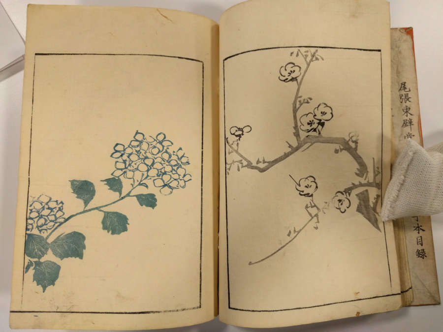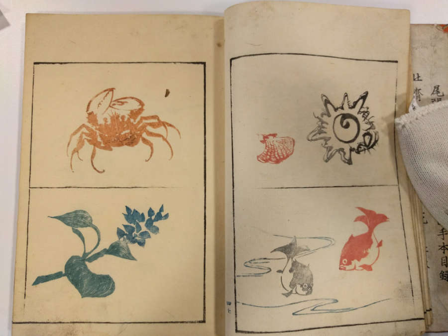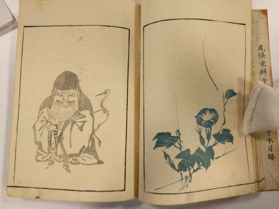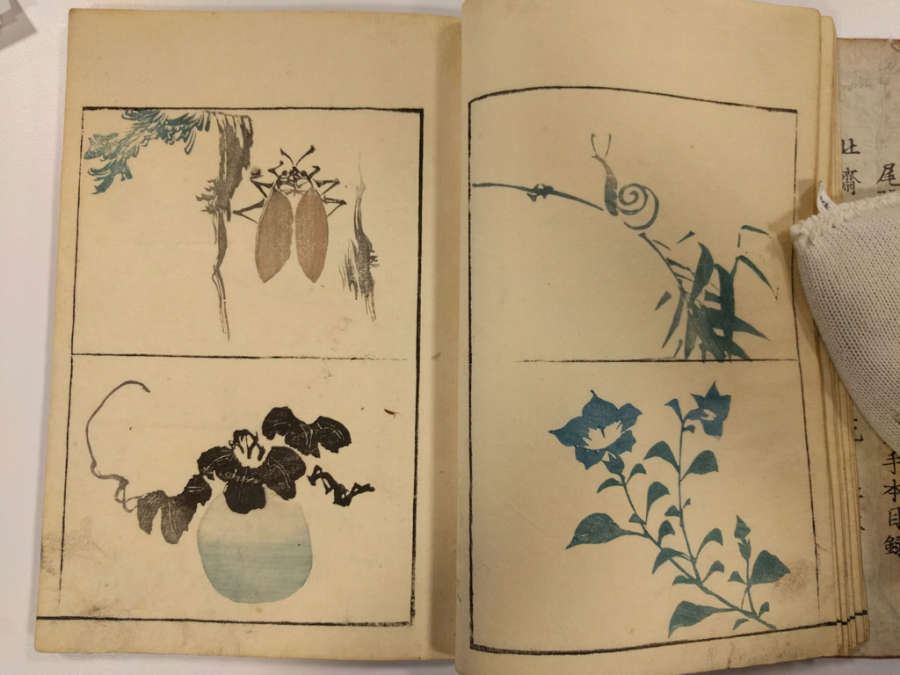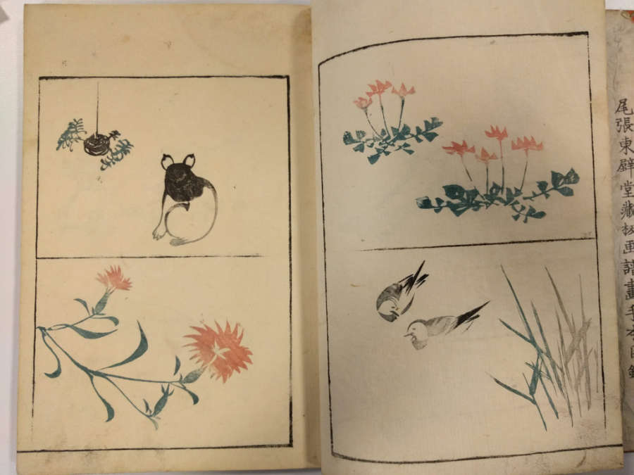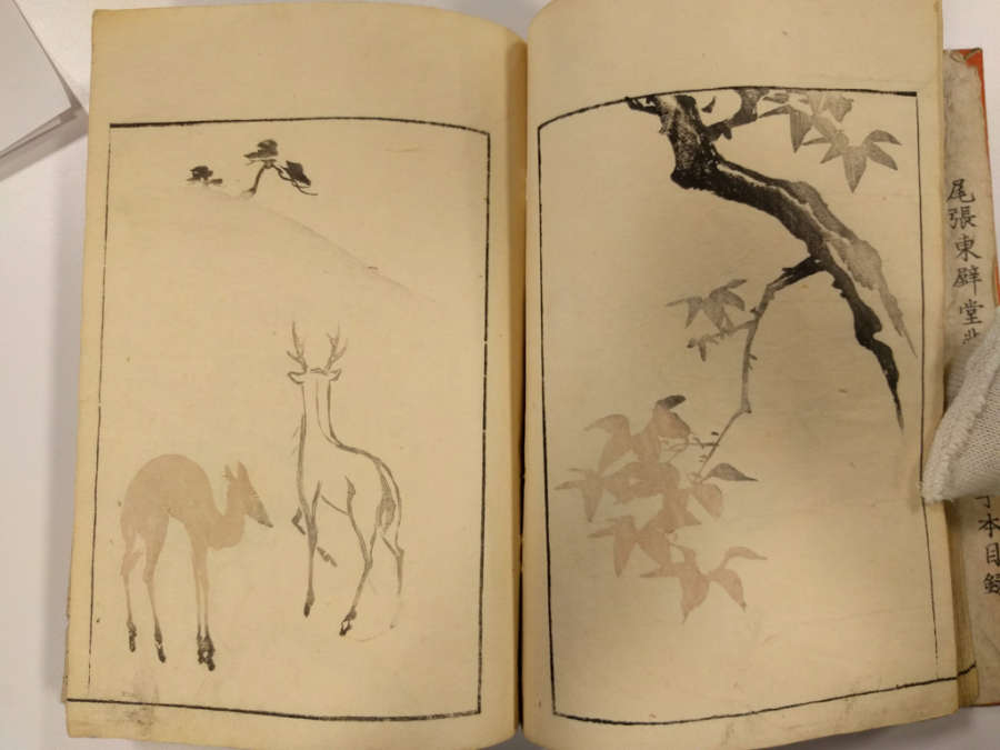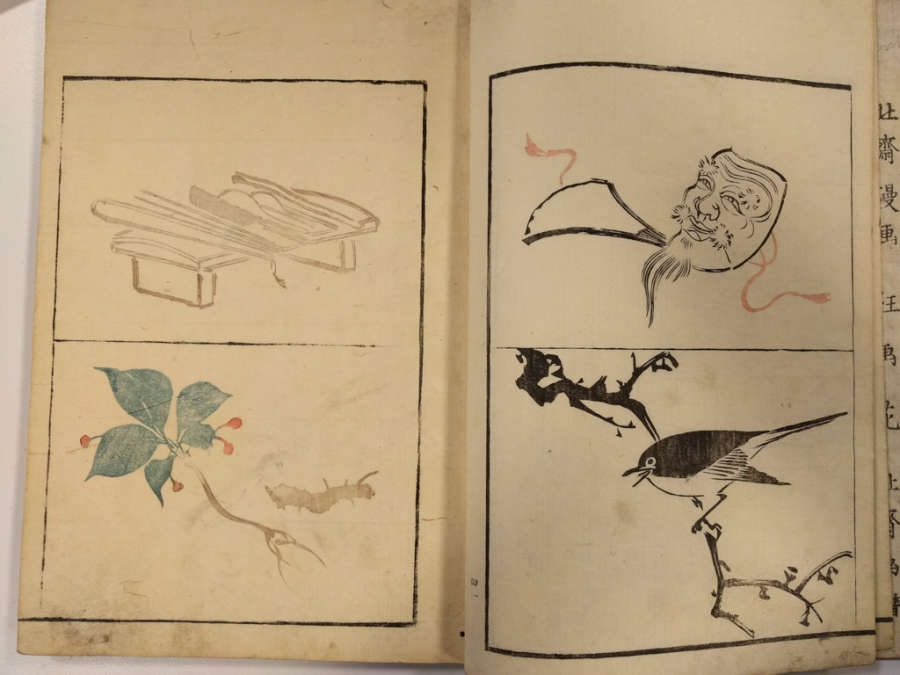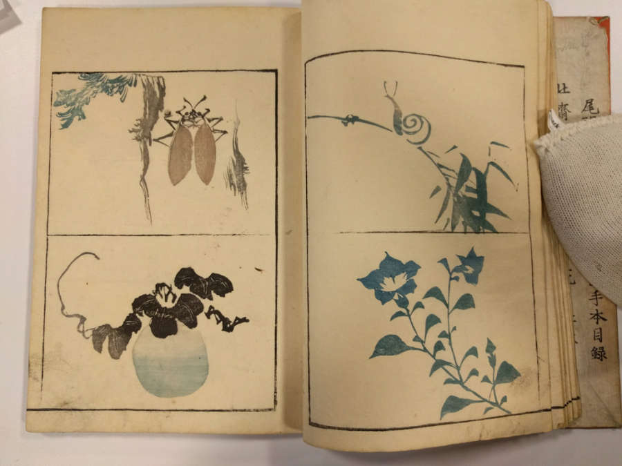Inscription on inside of front cover, top right in pencil: Masayoshi 4/13.1288Red circular seal stamped on first page, top right; red square seal stamped on last page with image.Octagonal label adhered to inside of front cover, top right corner with inscription in ink:Masayoshi/odd vol. (4); second octagonal label on back cover, top right corner, with inscription in ink: dy/35/Drawing/Masayoshi/13.1288; rectangular label directly below second label with inscription in ink: A/E783