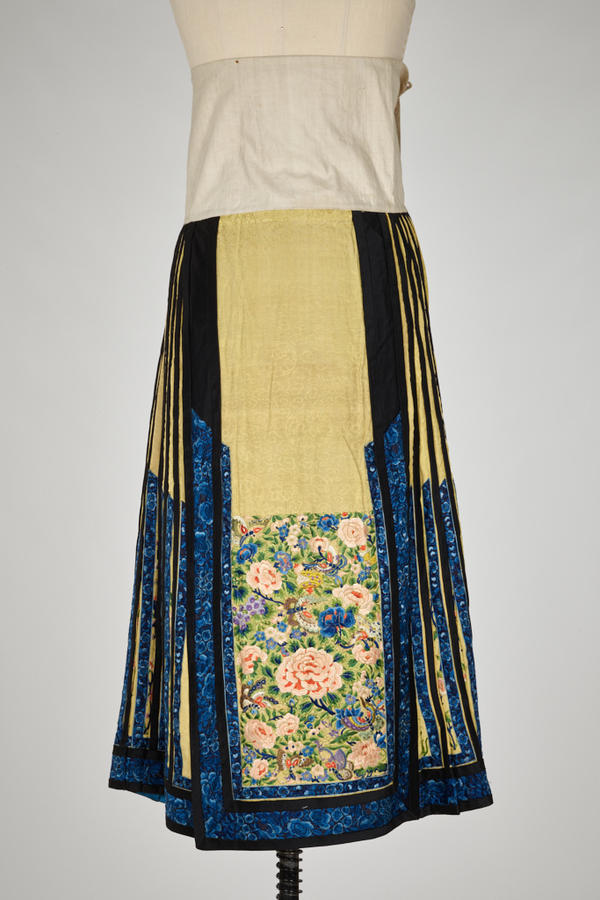 Silk, cotton; damask weave, embroidered