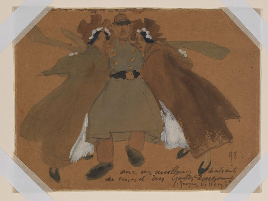 Recto:inscribed in ink in LR:avec mes meilleurs Souhaits / de nouvel an Gaston Duchamp/(Jacques Villion) 98