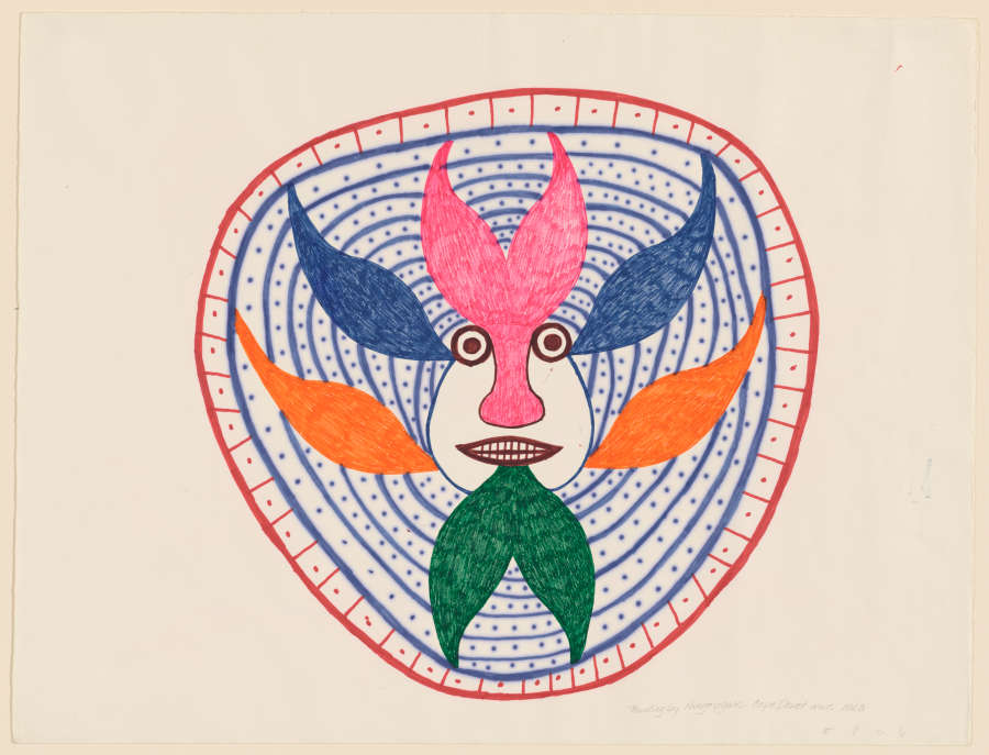 Signed and dated in pencil at LR:Painting by Ningeugak, Cape Dorset, NWT, 1968