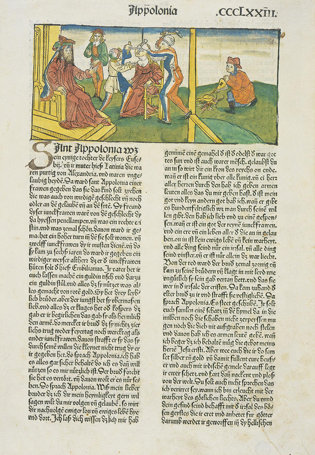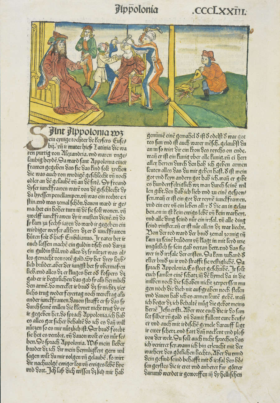 book page with image and text, from Jacobus de Voragine, Lives of the Saints (Passional oder Leben des Heiligen), Nuremberg: Anton Koberger