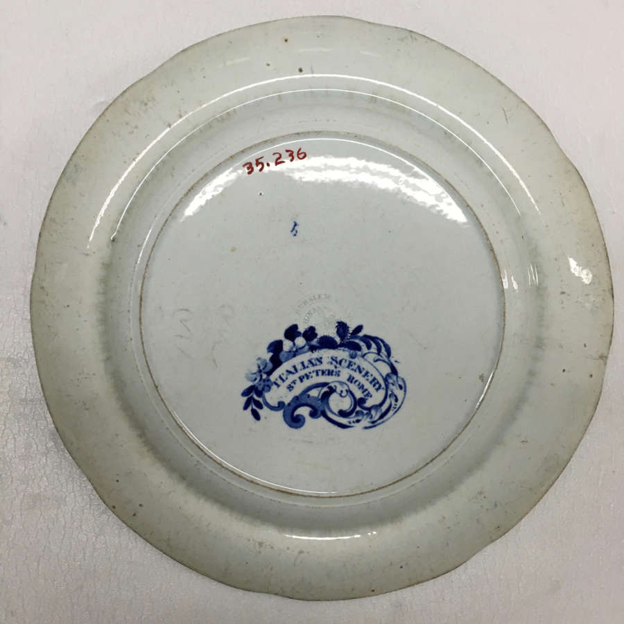 Marks: Within cartouche surrounded by leaf and flower sprays:Italian Scenery; and title on back; maker's name and mark impressed within circle on back.
