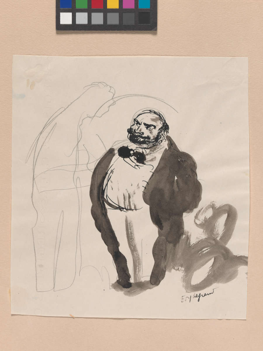 Graphite, pen and ink, and brush and wash on light weight wove paper