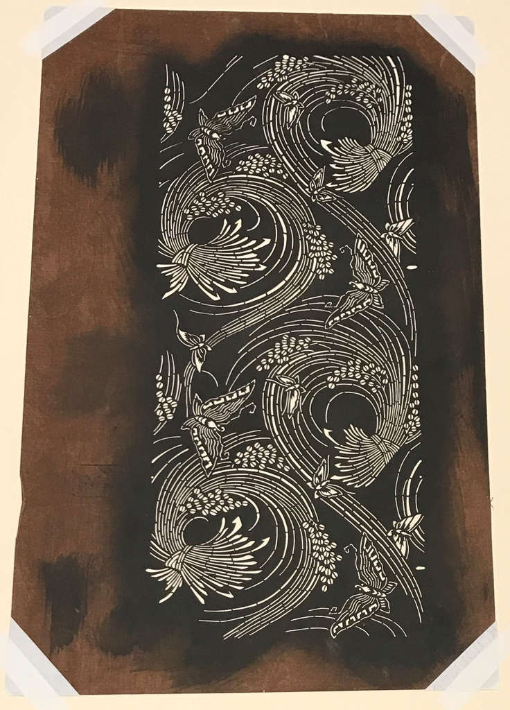 Stencil (Katagami) with Butterflies and Bundles of Reed
