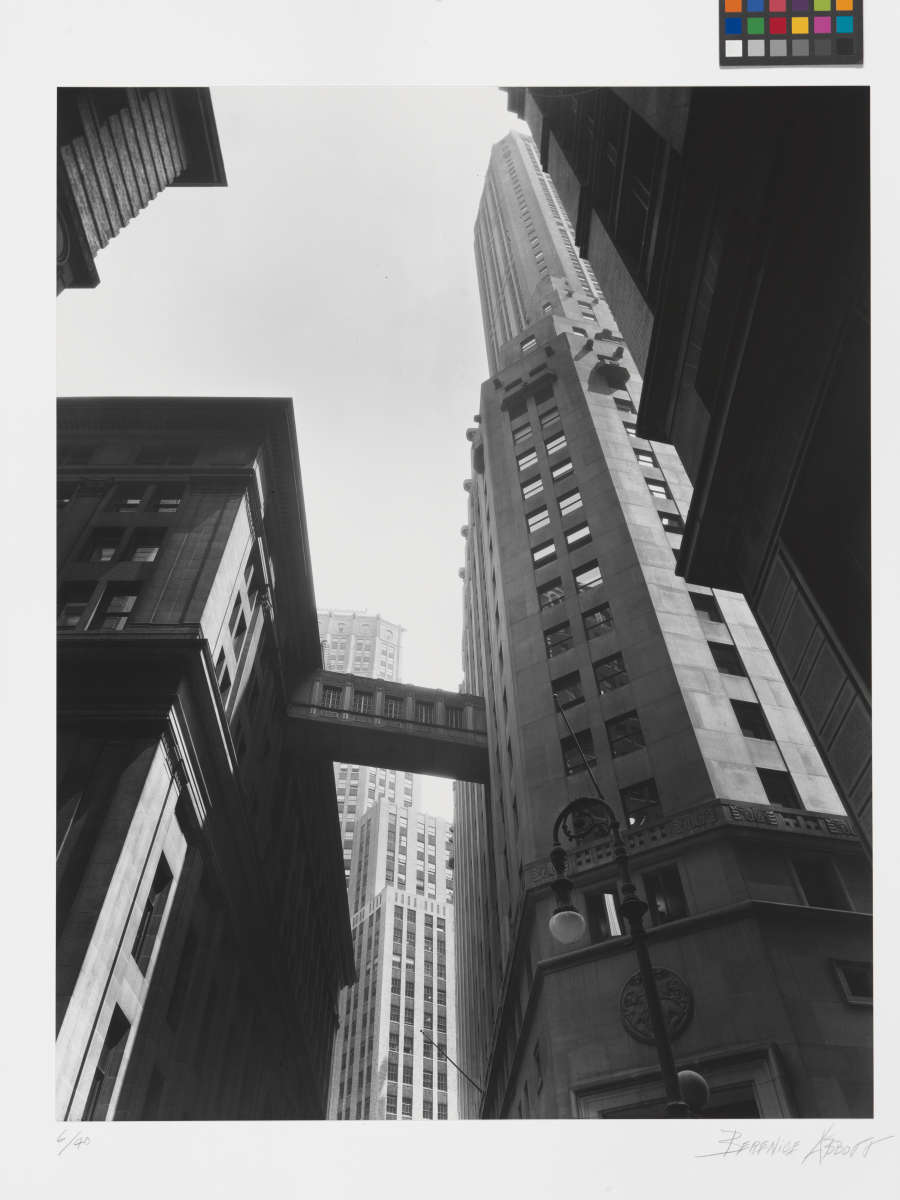 signed in pencil, lower right; stamped, verso: “BERENICE ABBOT/Retrospective//Published by Parasol Press, Ltd., /1982/