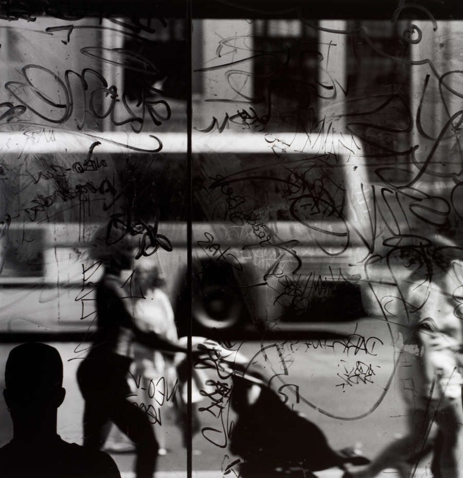 Label: White adhesive label adhered to plastic sleeve.Inscribed in pencil:"Street Scene III 1997 McDonald/Wright/B/W silver Photogrpahy, Selenium Toned/Double weight fiber base paper/(Ilford) Credit / Object Number