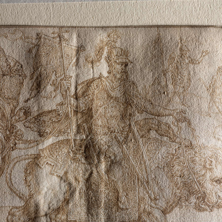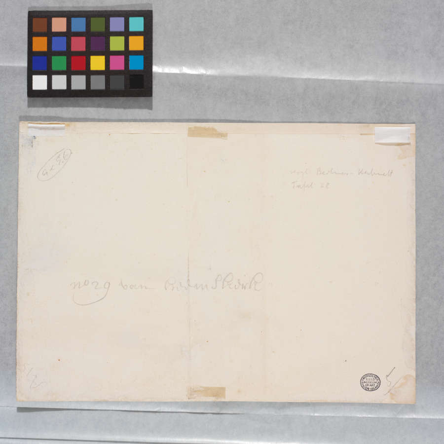 Inscribed in pen and ink, LR: "Martinus van Heemskerck [erased: inventor] 1559"; Inscribed verso: "no. 29 van Heemskerck" and "vergl. Berliner-Kabinett tafel 28"
