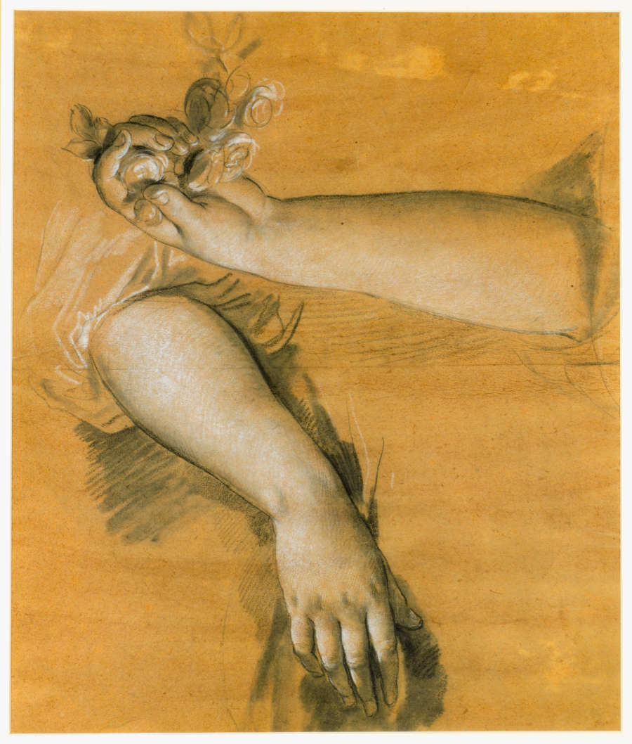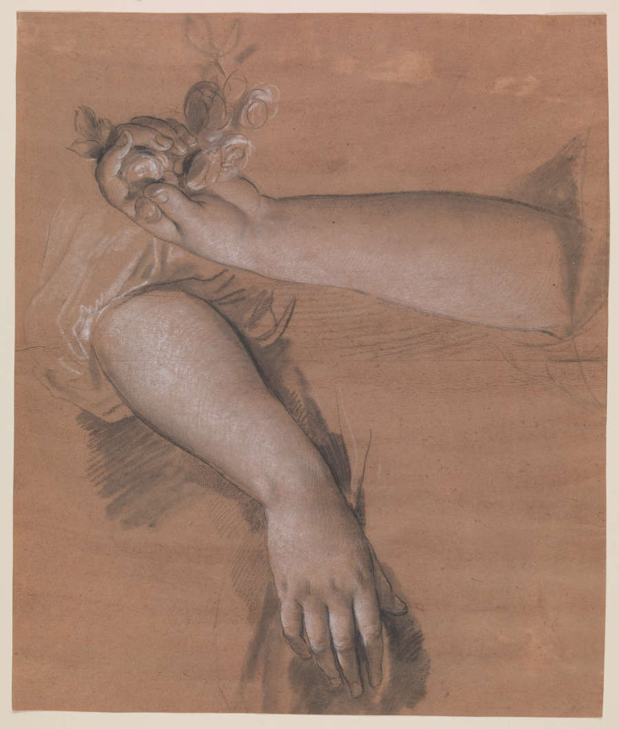 Study of Two Female Arms, One Holding a Rose Garland