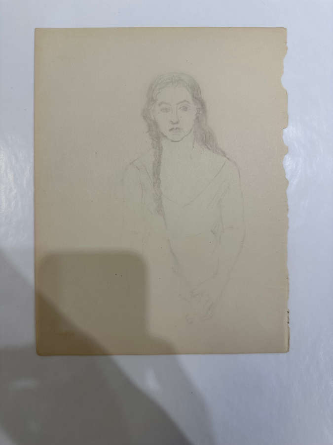 Study of Woman Grasping Long Braid