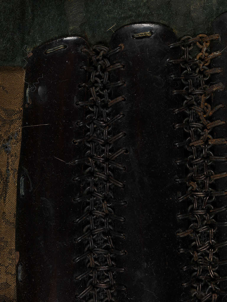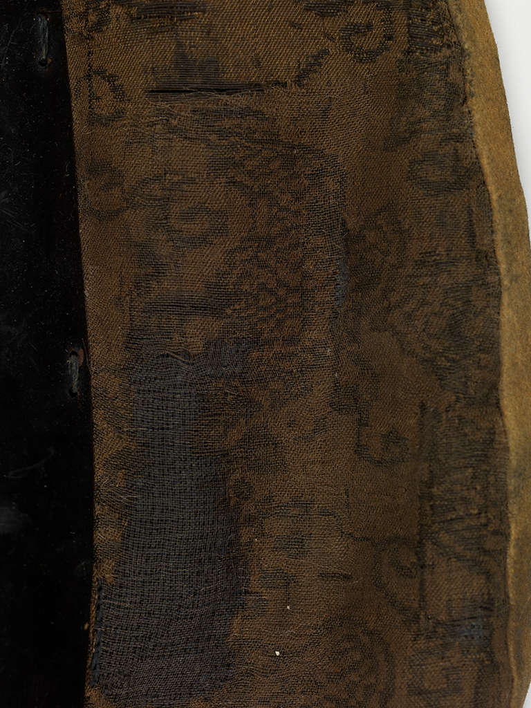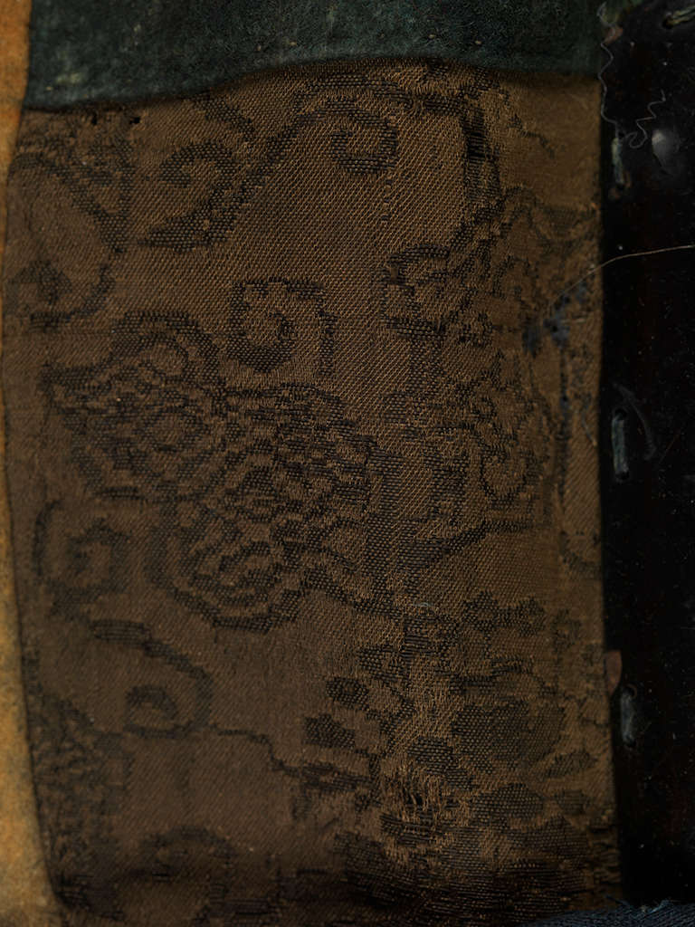 Lacquered iron, silk, leather, wool fabric