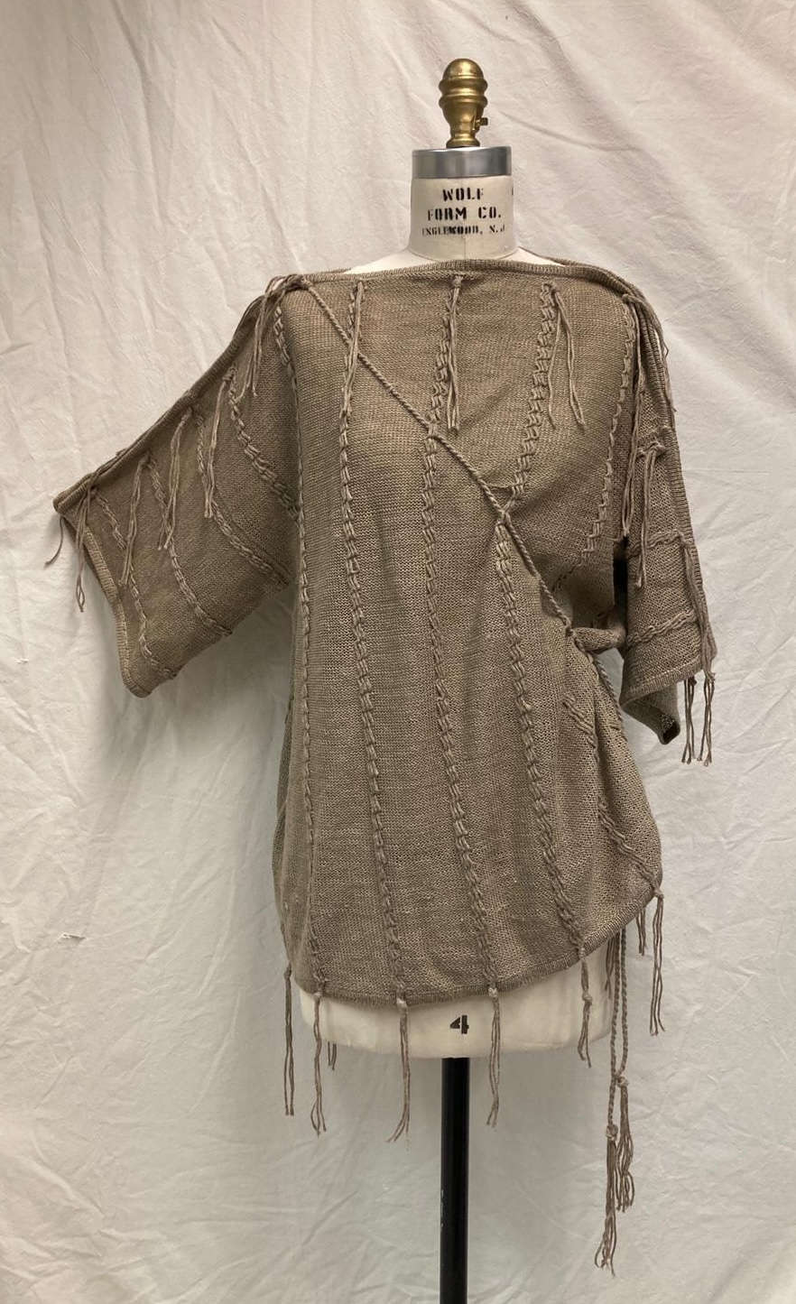 Cotton, linen; machine knit, garter stitch, applied drawstring