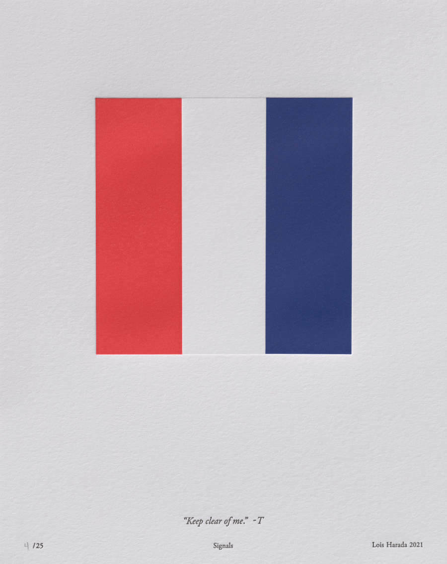 On recto, “4” inscribed in graphite LL within line printed in black ink at bottom that reads “/25 Signals Lois Harada 2021”