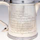 This unusually large tankard bears lengthy inscriptions indicating its significance as an heirloom of the Ellery family of Newport beginning in the eighteenth century and continuing through the twentieth century: