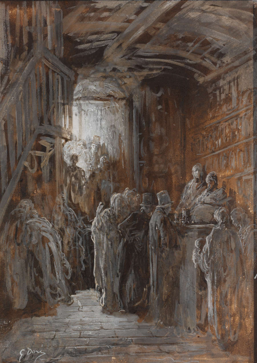 Signed, LL, in opaque watercolor: G. Doré; inscribed, LL, in opaque watercolor: Whitechapel / Londres / 1870