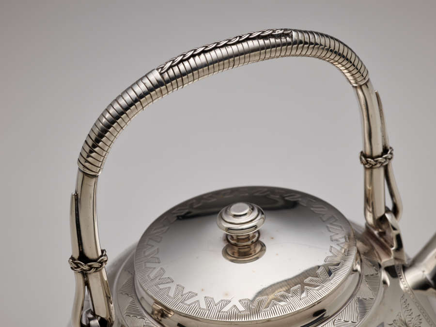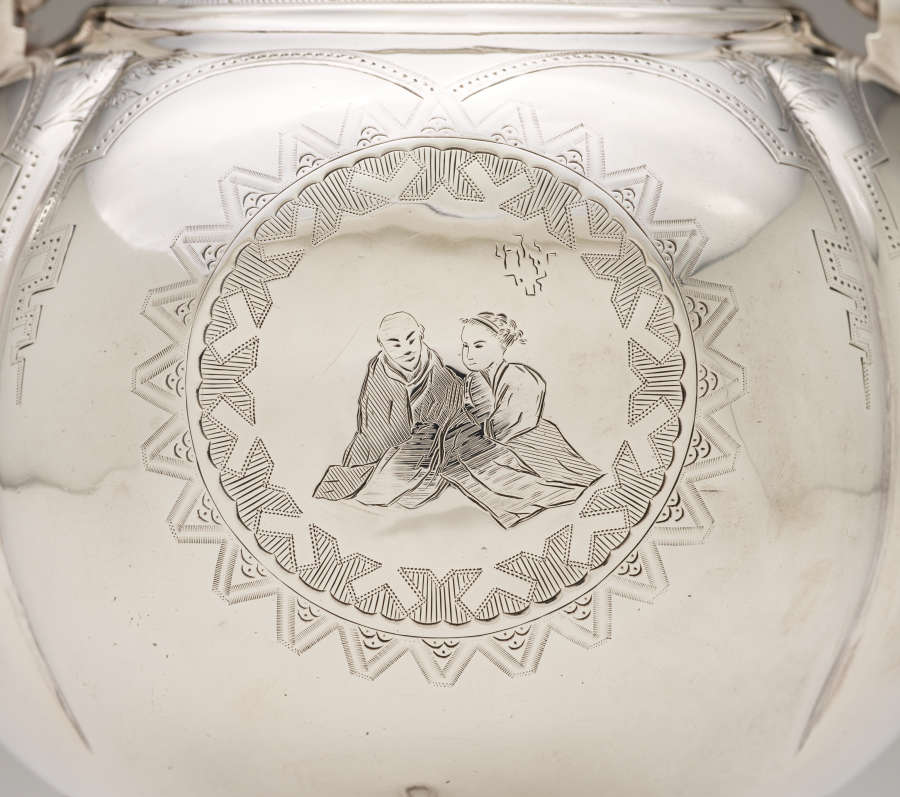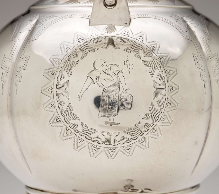 Stamped on base of teapot: T. KIRKPATRICK 10 Gorham mark: lion passant, anchor and monogram G STERLING D 5 1/2 pints