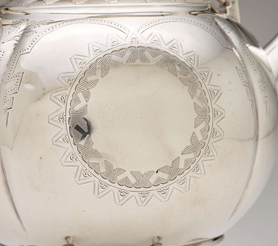 Stamped on base of teapot: T. KIRKPATRICK 10 Gorham mark: lion passant, anchor and monogram G STERLING D 5 1/2 pints