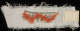 Coral beads, pearl-like beads, crystal, andbugle beads on woven fabric.