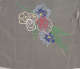 Floral design outlined in seed beads with flower-shaped bead accents on woven sheer.