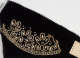 Embroidery design with gold-wrapped floss, crystal rhinestones and sequins on silk velvet.